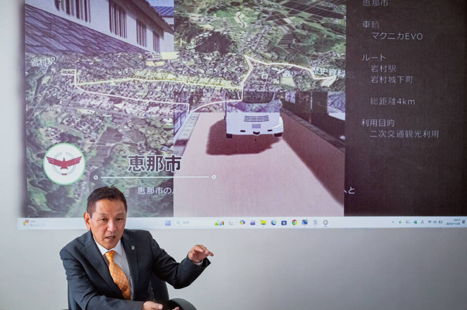 恵那市は13の町が一つになったまちです。全国的に知られた地域もあれば、名前は知られていなくても住民にとって大切な集落もあります。市長は「合併後、すべてを均一にするのではなく、それぞれの個性を伸ばしたい」と話します。「13の町は、どこも良い町だった。でも住所を見ると全部恵那市だった。そんな姿が理想です」。 その「個性を光らせるまちづくり」を支える基盤として、小坂市長が強調するのがデジタルの力です。「都会には当たり前にあるものが、田舎にはない。でもデジタルがあれば、優れた教育や専門的な知に出会うことができる。ハンディキャップを補ってくれるのです」と語ります。 メガネが世界を見やすくしてくれるように、デジタルは地方の挑戦を後押しする道具であり、人口減少の中でも暮らしを維持するための重要なツールだという考え方のもと、恵那市は行政分野だけでなく、まちづくりやモビリティなど幅広い領域でDXに取り組んでいます。 |