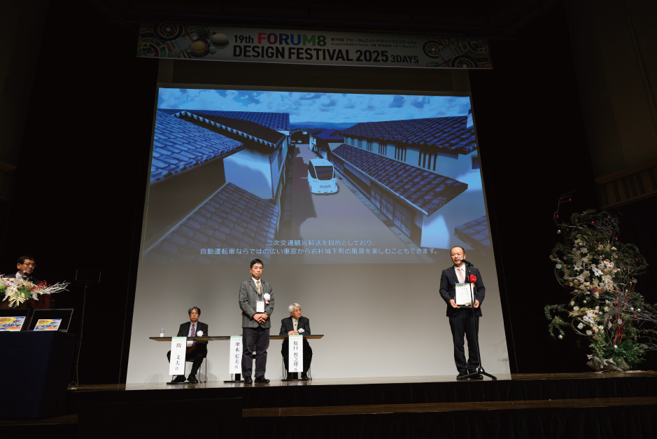 見えない未来を“見せる”VRの力 フォーラムエイトの3次元リアルタイム・バーチャルリアリティソフト「UC-win/Road」導入も、その象徴的な取り組みのひとつです。リニア中央新幹線の開業に向けては、大規模なインフラ整備が伴うため、住民説明と合意形成が避けられません。平面図だけではイメージしにくかった道路や構造物の変化も、3Dシミュレーションで「上空から俯瞰」し、「自分たちの目線」で確認できるようになることで、住民の理解度は大きく向上したといいます。 「職員が自分たちで操作して、3Dシミュレーションを作れるようにすることを重視しました」と語るのは、恵那市役所 まちづくり企画部次長 松田泰明氏。外部委託に頼らず庁内でモデリングと修正ができることで、コストも時間も削減できる。住民意見をその場で反映して画面上でルートを動かし、変更後の姿をすぐに見せられる―。そうした“リアルタイムな合意形成”こそが、恵那市がフォーラムエイトのUC-win/Roadを導入した大きな理由でした。 小坂市長は初めてUC-win/Roadで作成したVR映像を見たときに「一体いくらかかったんだろうと思った」と語ります。しかし実際には、外部に発注して作り直していた頃よりも、コスト・時間の観点で総合的な負担は減少しました。くわえて、「ここはもう少しこうしたほうがいいのでは」という住民の声に、シミュレーション上で即座に応えられるようになり、対話性が格段に向上したといいます。「デジタルツインのように、先に仮想空間で検証してから現場に落とす。手間も時間もお金もかかるリアルの前に、何度でもやり直せるのがVRの強みです」と市長は評価しています。 第24回 3D・VRシミュレーションコンテスト